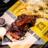 300Gr de Deliciosas costillas corte saint louis con curación de 8 días, 8 horas de ahumado en leña 100% natural y 4 horas de cocción al vacío en sweet BBQ para lograr ese sabor y textura irresistible, acompañadas de papas a la francesa y queso mozarella rayado